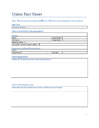 This form is used to document the nature of a grievance through the use of the 5 W’s. It’s available to anyone and should be filled out any time someone wants to grieve an issue.